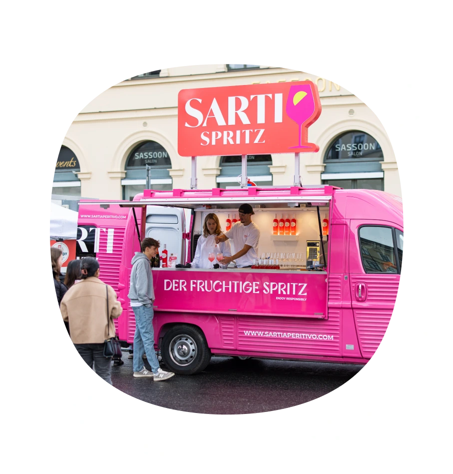 Ob bei Stadtfesten oder Festivals – triff dich mit deinen Liebsten am Sarti Truck auf einen eisgekühlten Sarti Spritz